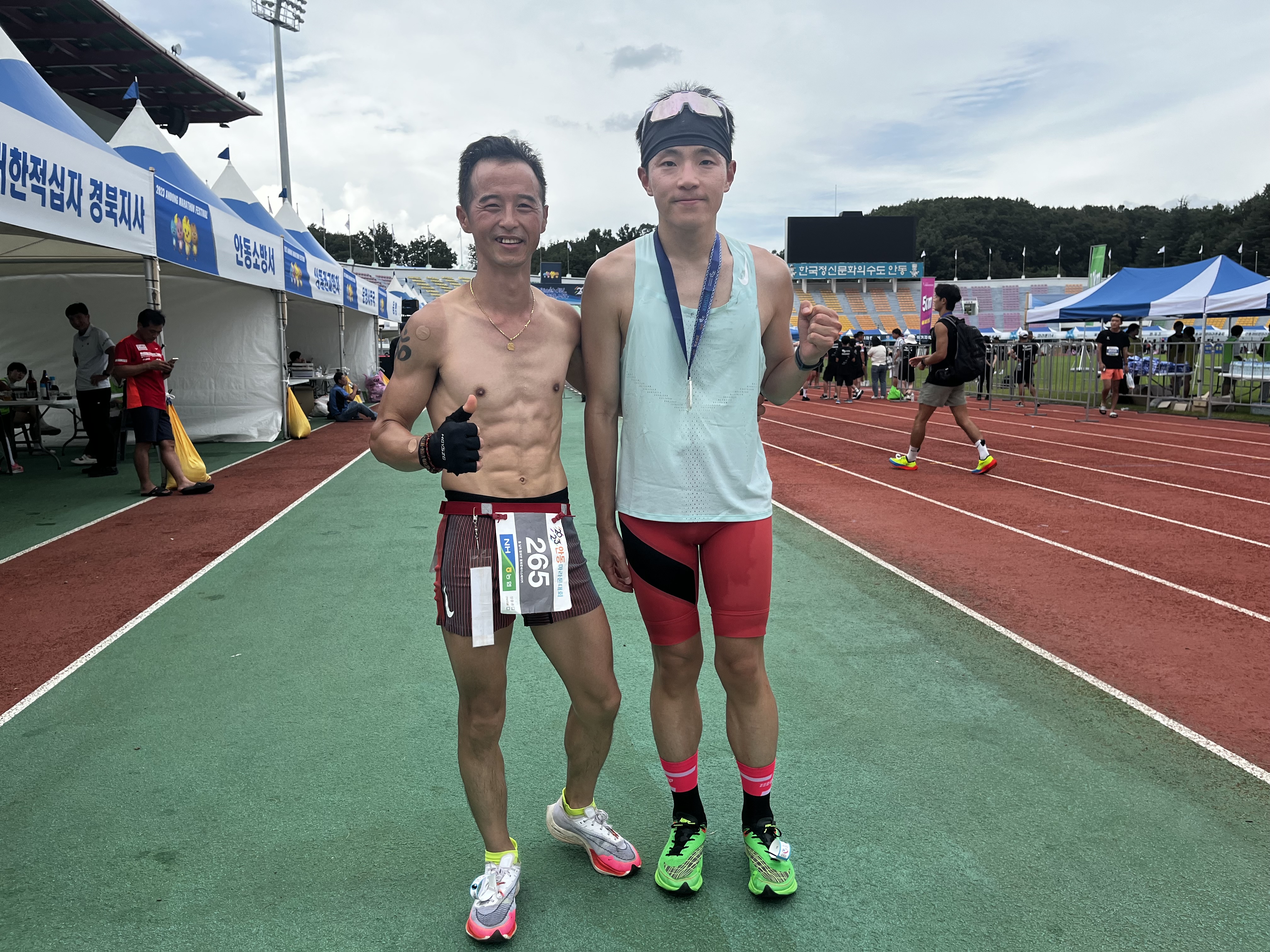 25km쯤, 우연히 만난 4시간 페메 선생님 덕에 다시 페이스를 찾았다. 급수대마다 물을 끼얹으며 버텼고, 끝까지 함께해준 그분 덕에 완주할 수 있었다.