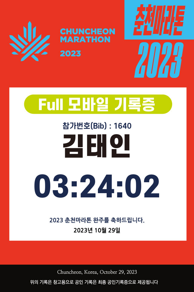 춘천의 아름다운 코스를 달리며, 마라톤이 단순한 기록 경쟁이 아니라 삶에 여유와 의미를 더해주는 소중한 경험임을 다시 한 번 느꼈다.